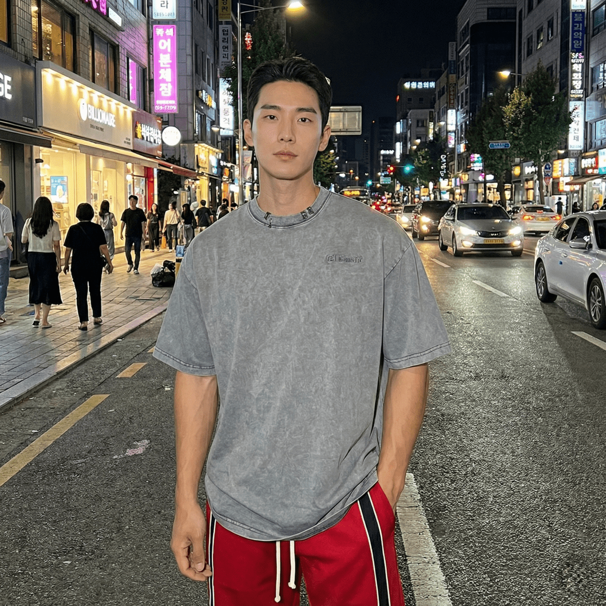 Elevate your wardrobe with our GS No. 380 Washed T-shirt – the epitome of modern elegance and versatility of Korean Men Fashion.