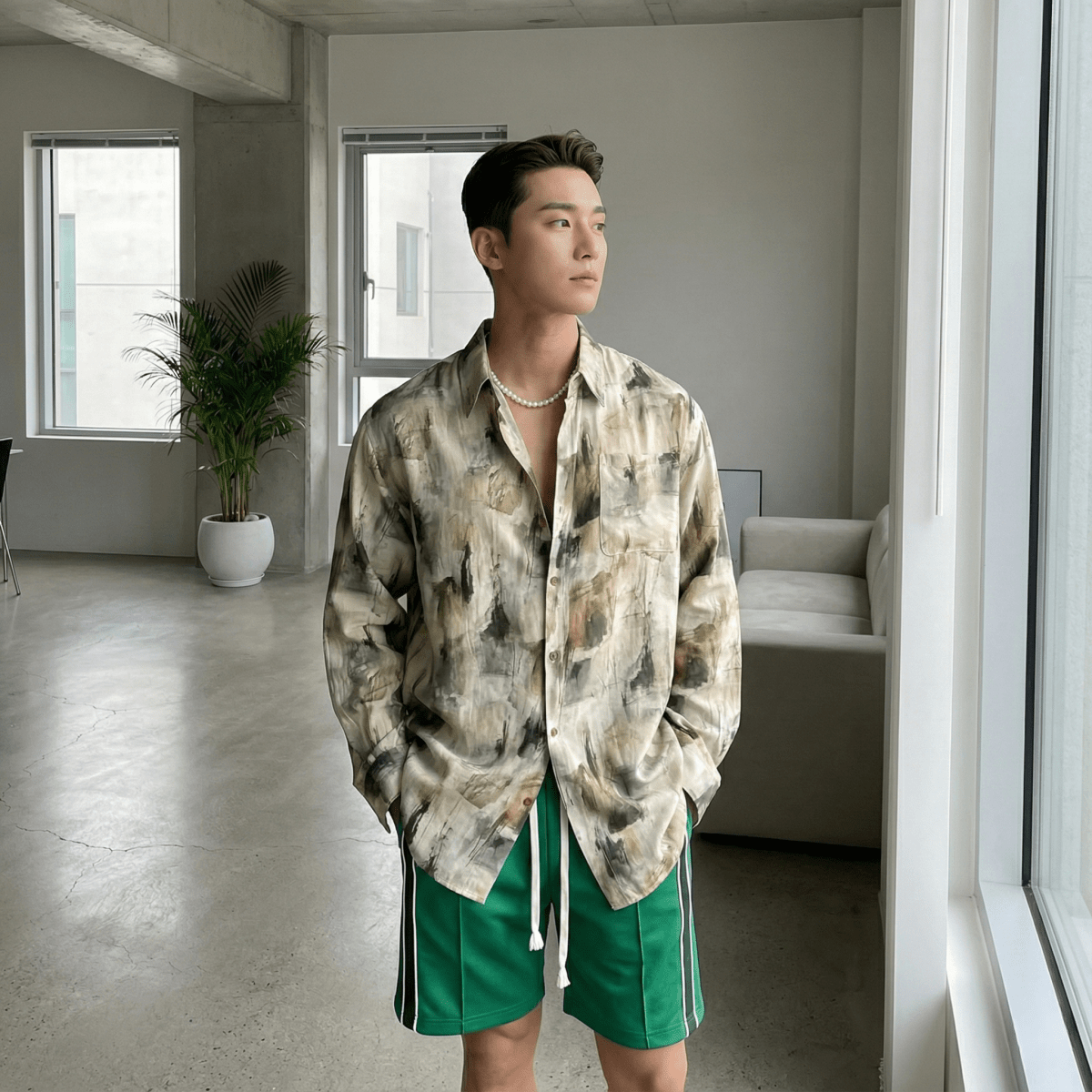 Elevate your wardrobe with our GS No. 385 Beach Shirt – the epitome of modern elegance and versatility of Korean Men Fashion.