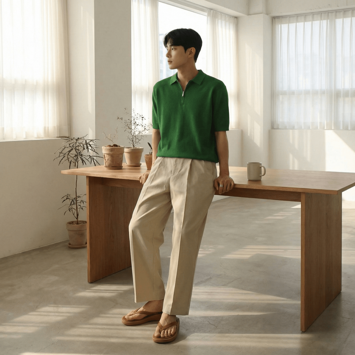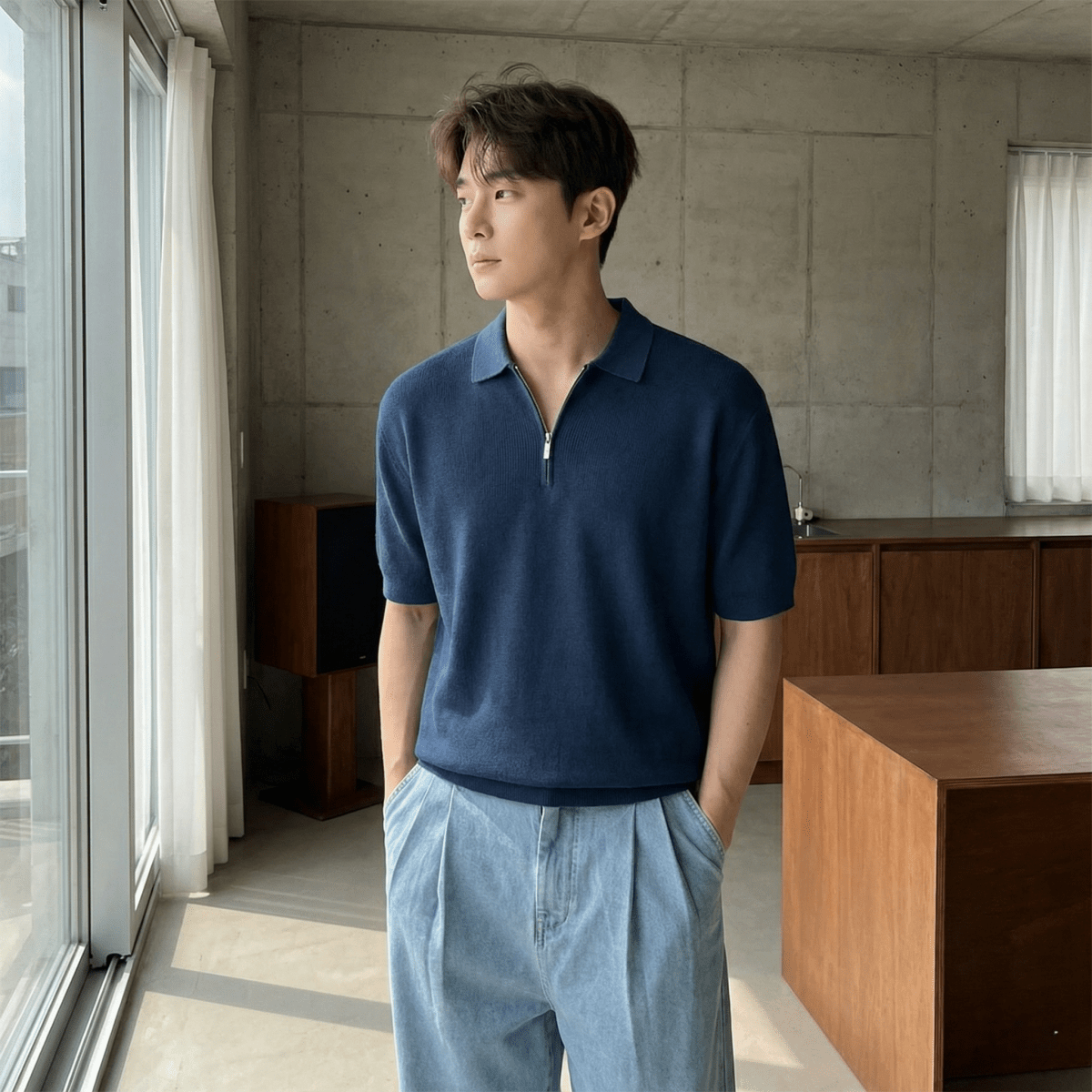 Elevate your wardrobe with our Knit Quarter-zip Polo, the epitome of modern elegance and versatility of Korean Men’s Fashion.