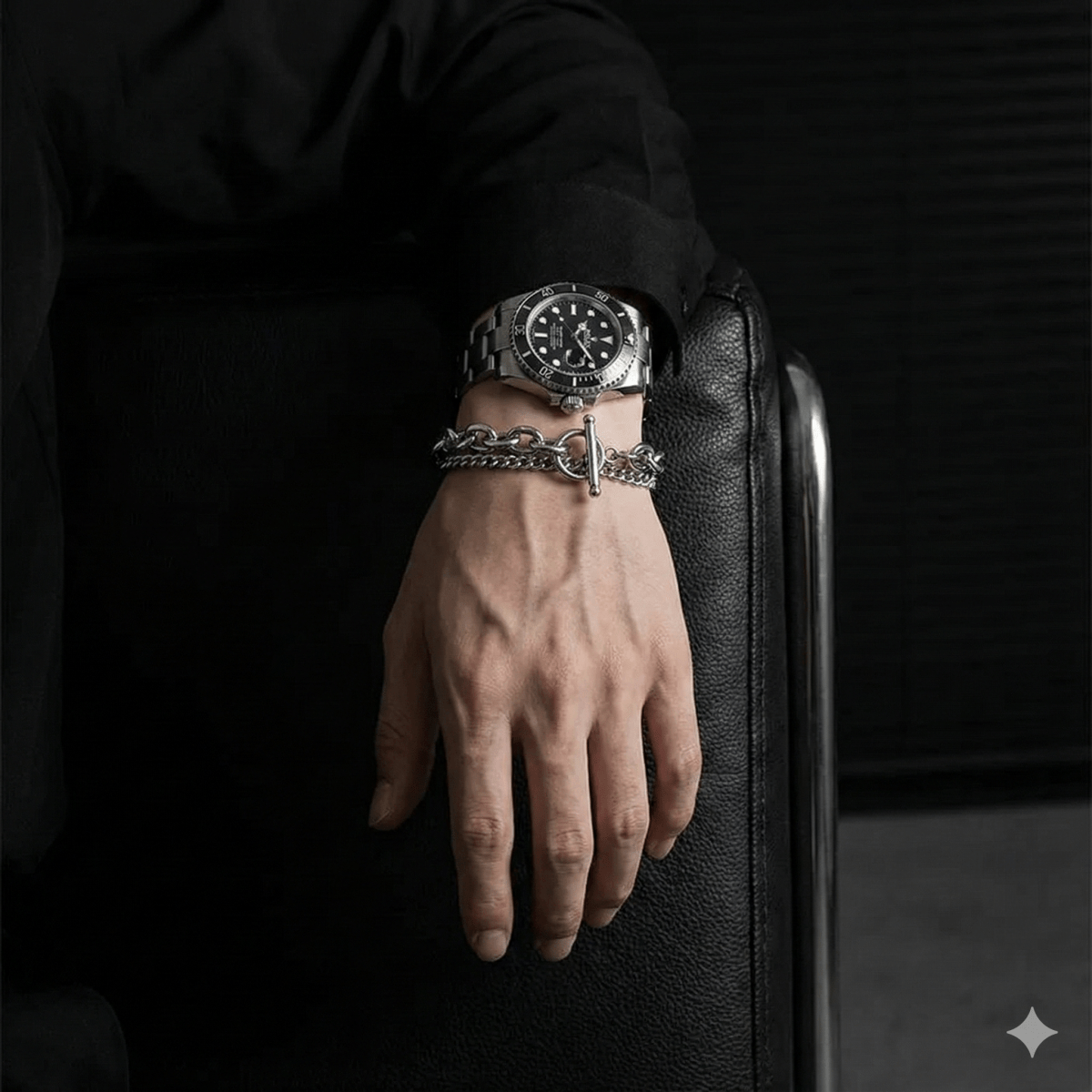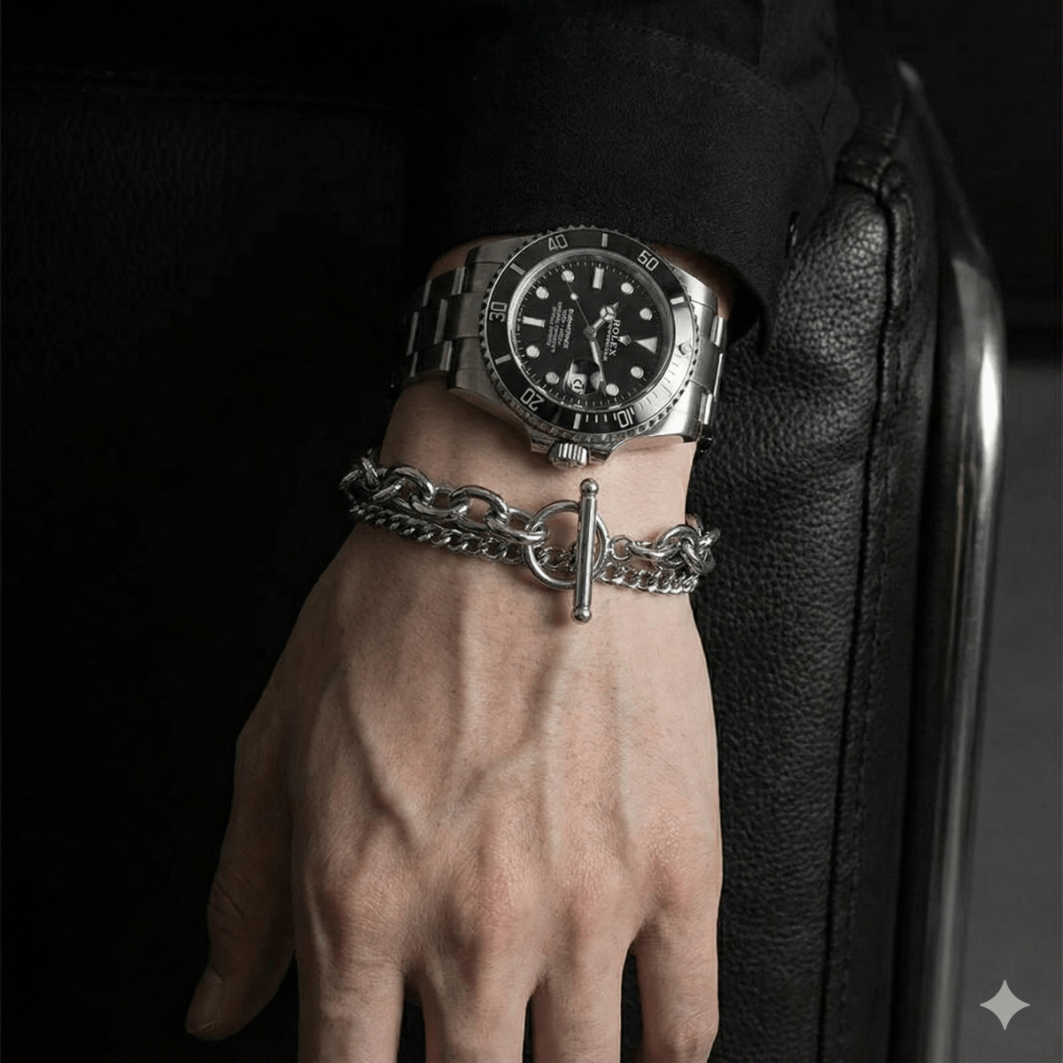 Rehaussez votre garde-robe avec notre bracelet Lock, la quintessence de l'élégance moderne et de la polyvalence de la mode masculine coréenne.