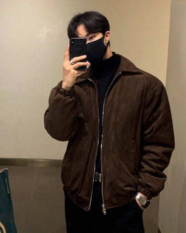 Présentation de notre veste en daim coréenne, une pièce intemporelle qui améliore sans effort votre garde-robe de mode masculine coréenne avec sa texture luxueuse et son attrait contemporain.