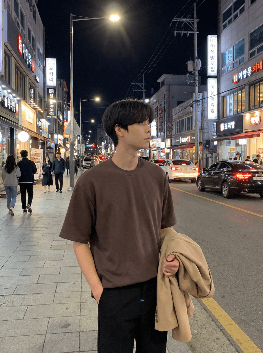 Rehaussez votre garde-robe avec notre t-shirt moderne, la quintessence de l'élégance moderne et de la polyvalence de la mode masculine coréenne.