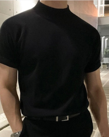 Rehaussez votre garde-robe avec notre t-shirt tricoté à col haut, la quintessence de l'élégance moderne et de la polyvalence de la mode masculine coréenne.