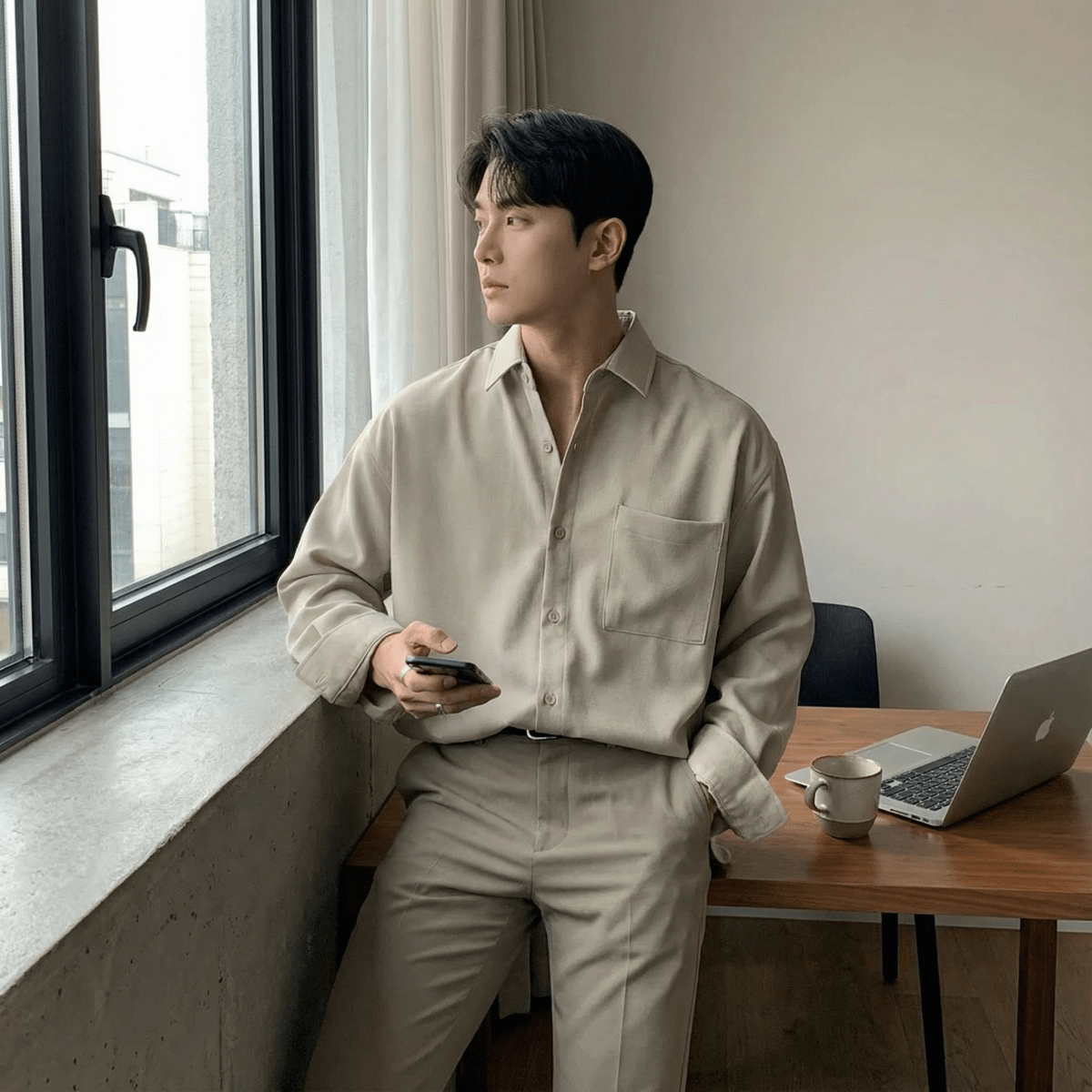 Rehaussez votre garde-robe avec notre chemise ample coréenne, la quintessence de l'élégance moderne et de la polyvalence de la mode masculine coréenne.