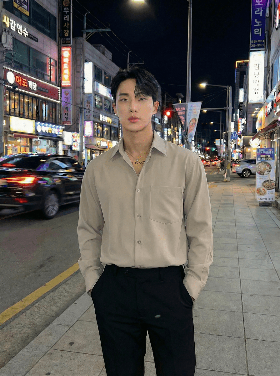 Améliorez votre garde-robe de mode masculine coréenne avec notre chemise ample à col, la quintessence de l'élégance décontractée et du style contemporain.