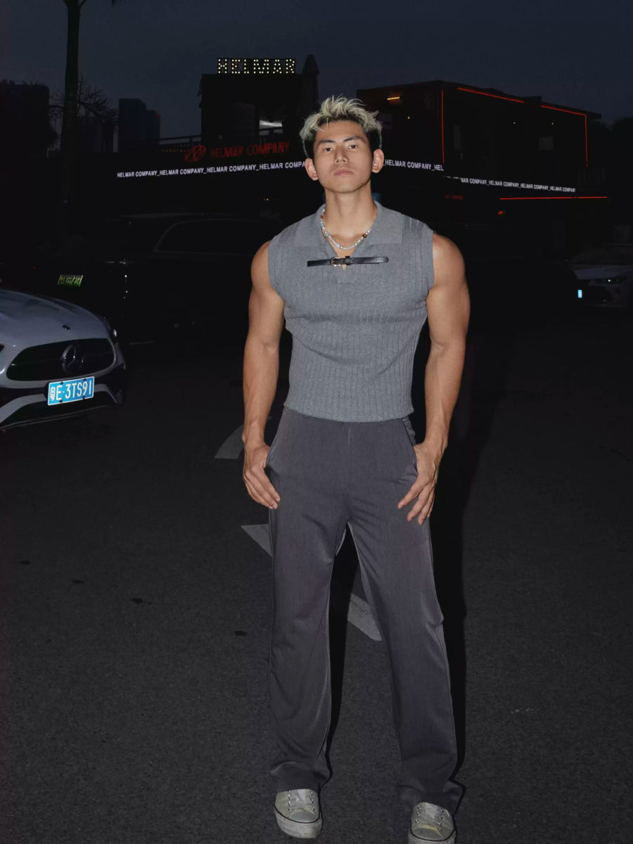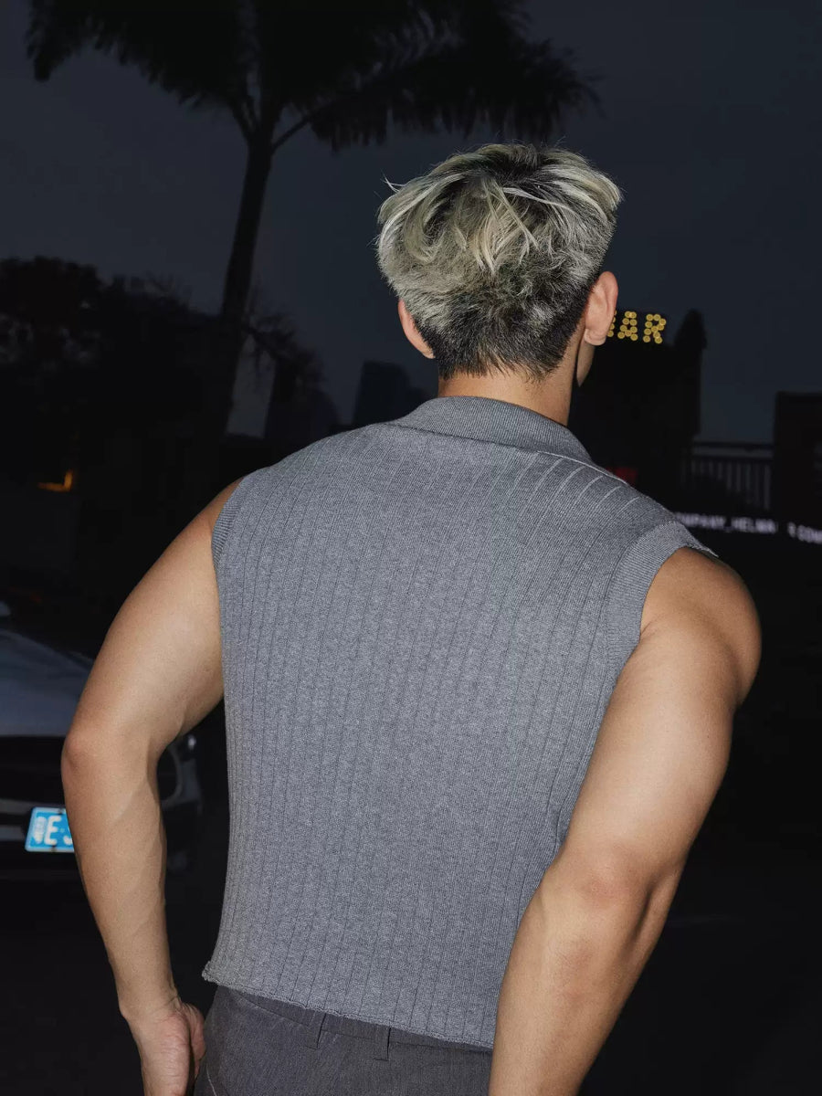 Elevate your wardrobe with our GS No. 411 Knitted Tank Top – the epitome of modern elegance and versatility of Korean Men Fashion.